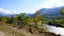 9.okt. Mostamies lietū. Ne gluži klasiskais jāņu gāziens, bet pilina neatlaidīgi. Virs galvām pamatīgi novilkušies mākoņi. Brokastis, kafija un visbeidzot tradicionālā šļuka un dzīve atkal šķiet gaiša. Gan tiešā, gan pārnestā nozīmē, jo mākoņi pēkšņi nez kur pazūd un mums atkal spīd saule. Trešais Rioni pārbrauciens ir ~24km. Ambrolauri – Shareula (nometne). Šis upes posms ir noteikti mierīgākais no visiem. Upe tek pa plašu ieplaku, tai joprojām ir lieliska straume, bet krāču krietni vien mazāk kā iepriekšējās dienās. Plata. Šī ir diena, kad pietiek laika pļāpām arī laivā. Paprovējam arī tādu lietu kā laišanos pa straumi bez laivas jeb bodyrafting. Nu baigi auksti, bet citādi tā nekas.
