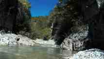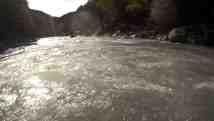 8.okt. Trešā diena un jau savas tradīcijas. Pie brokastīm kādam jau kurais rīts sākas ar fotoaparāta meklējumiem, kādam ar rīta peldi tuvējā kalna upītē un gandrīz visiem – ar mazu šļuku čačas. Šodien veicamais gabals pa upi ir ~17km no vakardienas finiša vietas (Sori) līdz Muhli kanjonam. Levans zina teikt, ka būs vēl interesantāk. Īpaši jau finālā. Tā arī ir. Pēdējos metros mīlīgos kalnus nomaina paskarbas klintis. Punktu liekam pie Muhli, kas latviski skanētu kā Ceļi (tie, kas mums kustina kājas), pievarot līdz šim lielākās laivotās krāces mūžā. Kāpjam krastā un, lielisku emociju pavadīti, atgriežamies nometnē. Pa ceļam atkal kannā tiek iepildīts sulīgais Kvančkarā. Guntis launagā savukārt sola vakar pievarētā jēra zupu. Kalnos saule noriet ātri, komfortablos +20 ātri nomaina samērā drēgnais vakars un strauji iestājas tumsa. Mums nu atliek laiks sarunām, ugunskuram un tostiem.