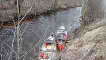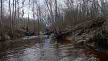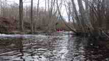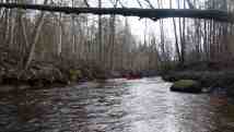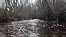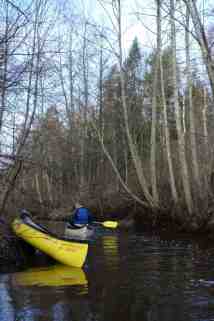 Lai arī bijām gatavi, ka braucot ūdeņus, kuri vasarā sastopami vien uz jāņusētas kartes sagaidīs mūs koki un bebru dambji, pārsteidzoši, bet bažas nepiepildījās. Pati Līgupe no Liepājas/Klaipēdas šosejas tilta līdz pat atzaram ar Paurupes kanālu ir gandrīz brīvi braucama. Upei ir lieliska straume, tā šķiet ir taisnoti un tās krastā esošie alkšņi un bērzi, spītējot Merfija likumiem, krituši nevis upē, bet tai blakus. Tomēr viss tik pasakaini gluži gan nav. Uzņemot kursu uz Paurupes-Līgupes kanālu piedzīvojām ko negaidītu. Ūdens tajā nav atrodams. Šobrīd tas ir nošķirts no upes ar zemes valni. Iespējams, tādejādi tiek atrisināts postošu plūdu jautājums blakus esošajā viensētā. Kanāls gan savu resursu savāc no Papes palienām un mežmalām neticamā ātrumā. Jau pēc ~100m ūdens daudzums ir pietiekams laivošanai. Tiesa, mazliet vēlāk gadījās vēl kāds ar laivu nepārvarams šķērslis – ledus. Tas gan saprotams, februāris laukā. Tā nu ledu laužot,un tur kur nevarējām, slidinot laivas, turpinājām savu ceļu uz Papi.