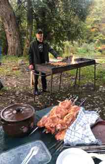 Lai kompensētu lietus radīto diskomfortu, pie mums ciemos ar cigāru jeb AUDI 100 brauc armēņu pavārs Sergejs. Līdzi ved milzu grilu (tādēļ auto bagāžnieks nav aizverams) un nenormāli daudz gaļu. Ēdam, cik jaudas, bet vecmammas teiciens par “izēd šķīvi, lai rītdien labs laiks” nestrādā. Nākamajā vakarā dzīvi slapjajās teltīs iemainām pret kādu viesu namiņa jumtu. Laika apstākļu dēļ nākas pamainīt arī pēdējās laivošanas dienas plānus. Nolemjam aizvietot mirkšanu laivās ar ekskursiju uz pasaulē lielāko dzintara ieguves rūpnīcu Jantarnijā[4]. Pareizāk sakot, apmeklējam “Kaļiņingradas dzintara kombināta” muzeju. Eksponāti: rotas, sākot ar smalkām krellēm un auskariem, beidzot ar milzu, speciāli Ņ.Hruščovam taisītu, dzintara lustru, 2 līdz 3 kg smagi tīrradņi un izsmeļoša saules akmeņu vēsture. Ķirsis uz kūkas ir iespaidīgās dzintara raktuves. Pērn te tika izrakts ~1.4 tonnas dzintara DIENĀ!
