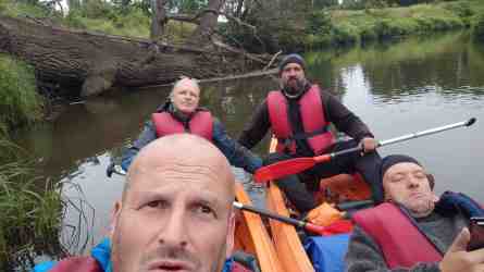 Rīts nomācies. Sola pat, iespējams, lietu. Šodienas plāns aizlaivot līdz “Jaunvanagu” mājām. Jānis palīdz mums ar auto pārdzīšanu uz nosprausto finiša vietu un tad atpakaļ pie vakar upmalā atstātajām laivām. Draudzīgi atvadāmies no mūsu patrona un ķeramies pie airiem. Jāpasteidzas, jo gribam laicīgi beigt laivošanu. Tomēr vēl patāls mājupceļš priekšā. Pirmā stunda aiz tilta upē samērā taisna, bet tad atkal sākas līkumi un vakardienas grandiozo skatu otrā sērija jeb ozoli, ozoli, ozoli. Te vienviet, vairāk kā 20 ha platībā izveidots (1977. g.) botāniskais liegums “Pededzes ozolu audze”. Iespējams, lieguma sakarā, jo cilvēka iejaukšanās dabas procesos ir ierobežota, dažviet upē gadās pa kādam sanesumam. Kaut kur varam izšļūkt pa apakšu, bet pie viena jākāpj laukā no laivām, jo priekšā 100–150 metru garumā koku krāvums. Labajā upes malā ieraugām stabiņu un tam piespraustu zīmi ”BAIBA. VELC LAIVU AUGŠĀ. ĀTRĀK KUSTATIES”. Īstā izkāpšanas vieta noskaidrota. Uzrāpušies ~5m stāvajā krastā, pārvelkam laivas pa pļaviņu līdz brīvajam ūdenim. Nenākas nemaz tik viegli dabūt tās atkal līdz upei (nabaga Baiba). Papriecājamies paši par savu paveikto darbu, jocīgo sakritušo koku puzli Pededzē, pāris foto/video atmiņai un braucam tālāk. Upe paliek vietām iepriekš vēl neredzētā platumā. Šad un tad arī uzlīst, bet nekas ekstrēms. Varam arī patērzēt, kopā laivojot. Vārds pa vārdam un līkums aiz līkuma, līdz labajā krastā pamanām mūsu automašīnas pelēko jumtu. Esam galā jeb “Jaunvanagos”. Starp citu, vietas saimnieki stāsta, ka arī te nākamvasar būs laivotājiem draudzīga atpūtas vieta ar viesu namu, ugunskura vietu, telšu laukumu un pirtiņu. Iesakām! Savukārt mēs krāmējam kanoe uz Jāņa laivu ratiem, pārvelkam slapjās bikses un laižam uz mājām.