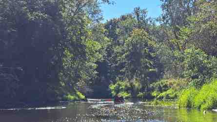 Ātras brokastis apēstas, un jau sēžam vecajā, labajā Jāņa auto. Vēl pirms desmitiem kāpjam laivās. Līdzīgi kā vakar, laiks kolosāls, ar pašsajūtu viss kārtībā. Kādu brīdi uzairējuši, pamanām krastos informatīvas zīmes, kas liecina, ka esam iebraukuši “Sitas un Pededzes dabas liegumā”. Aizsargājamā teritorija 2004. gadā izveidota ar domu saglabāt šeit dabīgās palienu pļavas. Ornitologi secinājuši, ka šī ekosistēma vitāli svarīga ir Latvijā ļoti reti sastopamam putnam – ķikutam (savdabīga paskata dzīvība, pēc skata, man vismaz, atgādina mazliet irbi, vien ar trīsreiz garākām kājām un knābi). Un ne tikai viņam vienam. Abos Pededzes krastos šobrīd izveidotas ganības. Labajā pusē iedzīvojušās Hailandes šķirnes govis, kaimiņos, otrpus upei, izveidots briežu dārzs. Pie briežiem izkāpjam. Teritorija apjozta ar augstu žogu. Pa perimetru šur un tur slejas medību torņi. Pašus dzīvniekus gan neredzam. Droši vien pieguluši tuvējā mežmalā. Tā pa tukšo pagorījušies kādu brīdi pie rūtainās metāla stiepļu sētas, dodamies atpakaļ uz laivām.
