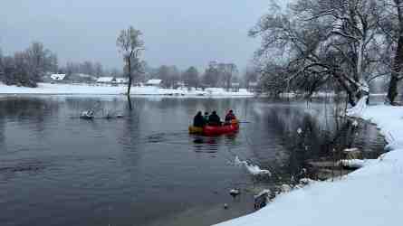Mūsu pamata četriniekam klāt nācis vēl viens laivas biedrs, un nu būsim jau pieci. Vēl jautrāk. Esam mainījuši arī savu bāzes vietu. Paliksim viesu namā “Naktsvijoles”, kas atrodas pavisam netālu no Jaunkalsnavas. Saimnieks labprāt piekritis mums palīdzēt arī ar transportu uz/no upes, dot katram pa gultas vietai un sacienāt ar brokastīm un vakariņām. Iebraucot sētā un spiežot viens otram roku, secinām, ka mums būs atkal darīšana ar Jāni. Pagaidām 3 no 3! Nomainām izejamās drēbes pret upes apģērbu, ņemam Jāni sev līdzi un braucam meklēt Švāna tiltu. Pa ceļam skati aiz automašīnas loga ir diezgan arktiski. Sniegs visapkārt, šur un tur no viensētu skursteņiem stāvus apmākušajās debesīs kāpj balti dūmi. Laikam šobrīd ar laivu kaut kur doties nebūtu īsti normāli. Jautājums, protams, filozofisks, bet kas vispār 21. gs. vairs ir normāli.