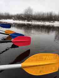 Ja Kurzemē jau zied sniegpulksteņi un Papes ezera pļavās bļaustās dzērves, sinoptiķu ziņu lentēs par Vidzemi un Latgali vēl ik pa brīdim parādās info par -20 °C, kas citiem vārdiem nozīmē, ka upes varētu būt aizsalušas. Pirms doties airēt Aivieksti, sazināmies gandrīz ar visiem iespējamiem, mums zināmiem tā “rajona” cilvēkiem. Gala rezultātā mūs iedrošina kundze no kempinga “Upmalas”, kas atrodas pašā Aiviekstes krastā. Viņa pārliecinoši stāsta, ka upē ledus izgājis jau labu laiku atpakaļ, bet šobrīd lejā pa straumi laižas vien A3 izmēra vižņi un ir mazliet piesaluši krasti. Citādi upe ir brīva.