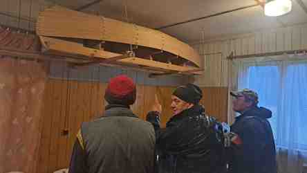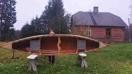 Vakars, nakts, rīts mums pagājis aktīvās diskusijās par šīs dienas pareizo laivošanas sākuma vietu. Izsecinām, ka Ellītes purvā meklēt Iecavu ar trim lielām kanoe pārāk prātīgi nebūtu. Beigu baigās tiek pieņemts Zālamana lēmums, ka sāksim no Iecavas dīķiem. Ja kas, pie labvēlīgākiem apstākļiem, vēl mums paliek cerība kādreiz nolaivot Stampupīti un tādejādi savienot vakar pārrauto mūsu maršruta ķēdes posmu. Vietējie gan saka, ka braukt no Iecavas dīķiem arī nekas gudrs nav. Bet ar kaut ko mums noteikti jāsāk. Esot jau pie Dobeļu dīķa (viens no četriem, kas kopā veido Iecavas dīķu ansambli), rodam izskaidrojumu, kādēļ vakar Stampupīte nebija pamanāma. Dīķis ir nolaists, bet kartē tieši te iezīmēta ir vien 6 km garās upes izteka. Iecava pēc dīķiem ir vien aptuveni 2 m plata. Teorētiski efektīvāk ir airi aizstāt ar kādu mietu un vienkārši stumties uz priekšu. Pēc dzelzceļa tilta arvien uzskatāmāk krastus sāk pārņemt niedres. Ja iesākumā tā ir tikai daļa ainavas, drīz vien pienāks brīdis, kad vienīgā opcija vides maiņai ir paskatīties uz debesīm. Šodien gan tās ir novilkušās tumši pelēkas. Pa brīdim uzlīst. Lai mazliet sevi uzjautrinātu, kā tādas peles siena kaudzē, meklējam pareizos virzienus. Gadās, lai apsteigtu labu gabalu priekšā esošo laivu, nav nepieciešams ātrums, pietiek vien izvēlēties pareizo tērcīti niedrājā. Gadās arī dzirdēt no muguras izmisīgu saucienu P-A-G-A-I-D-I-E-T……Nevar gan teikt, ka esam spējīgi uzturēt pieklājīgu tempu. Upe ir sekla, dažreiz trāpās pa kādam aizkritušam kokam. Šur un tur nākas pamatīgi pamocīties, lai tiktu uz priekšu. Un tomēr samērā laicīgi sasniedzam šīs dienas plānoto galamērķi jeb tiltu pie “Raudupītes” mājām. Gaidot transportu, kas nogādās mūs atpakaļ uz “Miera vējiem”, aizejam līdz blakus esošajai mājai. Jau no tāluma esam pamanījuši sētas vidū, uz statņiem noliktu, skaistu koka kanoe. Tātad – laivotāji! Viensētā, kas sastāv no divām ēkām – dzīvojamās mājas un paliela šķūņa, rosās arī paši saimnieki. Sasveicināmies un viegli ir atrasta kopējā valoda. Protams, apjautājamies par laivu. Izrādās, tā ir paša saimnieka rokām būvēta, un tā nav vienīgā. Pāri ceļam, namiņā, kas arī pieder “Raudupītes” iemītniekiem, ir vēl viena kanoe tapšanas stadijā. Mazliet mazākos izmēros gan. Akurāti saskrūvētās koka detaļas ļauj noprast, ka kanoe tiek veidota ar īpašu rūpi un mīlestību pret darbu. Vasarā gan ūdenstūristi te ir reti, jo šis Iecavas posms nav starp tās populārākajiem maršrutiem, bet paši gan brīvbrīžos upi nobraucot. Uz atvadām draudzīgi paspiežam viens otram roku, bet saimniece vēlāk mums atsūt jauku foto no ģimenes iepriekšējās vasaras laivu brauciena, ko esam izvēlējušies par mūsu šī brauciena galveno bildi.