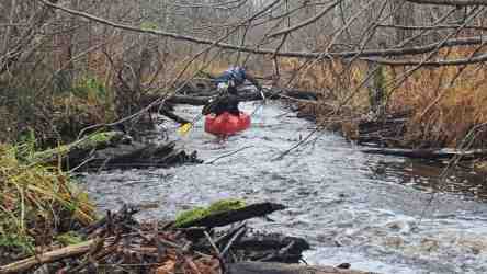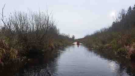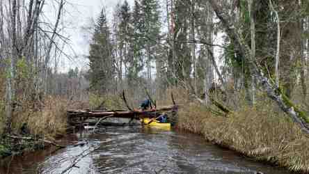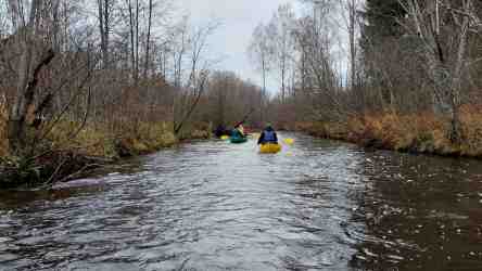 Šis ir nobrauciens, kuram mums nākas gatavoties mazliet nopietnāk nekā citas reizes, jo tikt no Daugavas uz Lielupi dzīvē nav gluži tas pats, kas ar acīm pa datora karti noiet. Kādu nedēļu pirms plānotā brauciena Kristaps ar Armandu dodas vienas dienas izlūkos, lai novērtētu, kā izskatās dzīvē dažas mazās upēs, kuras mums jāpievar, lai nokļūtu Iecavā. Precīzāk – jānoskaidro, kas notiek Korkulē, Laucē, Stampupītē un Iecavas dīķos. Ziņas no mūsu ģeogrāfiem nav diez ko iepriecinošas. Korkule pat pie tik augstiem ūdenslīmeņiem, kādi ir 2023. gada novembrī nav laivojama. Lai arī ar to bijām rēķinājušies, jo zinājām par Korkules ūdens pazušanas īpatnībām, gluži kā nokauts boksa cīņā nāk tālākā ziņa, ka arī Stampupīte ir sausa. Pat neskatoties uz to, ka pēdējās dienas līst kā pa Jāņiem.