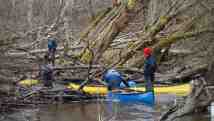 Otrā diena sākas ar nometnes atsaldēšanu, jo naktī bijuši mīnusi. Dzeram kafiju, cepam olu kulteni. Skatot karti, ir skaidrs – lai neierautu pamatīgā zarā, laivošana mums jābeidz pēc nepilna kilometra. Tālāk braukt nebūtu vēlams, jo nākamais piebraucamais ceļš vien pēc 6 km līkumotās upes, bet daudziem vēl tāls ceļš līdz mājām.